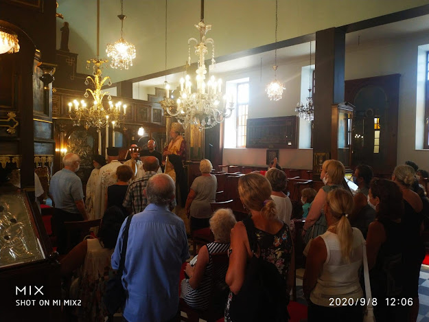 Ο οικείος ποιμενάρχης χοροστάτησε στην Ακολουθία του Μ. Εσπερινού της εορτής (7-9-2020) και ιερούργησε στην Θ. Λειτουργία, ανήμερα της εορτής της Παναγίας, εν μέσω ικανού εκκλησιάσματος.